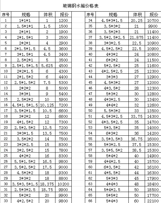 smc玻璃鋼水箱規格是多少,價格如何計算?